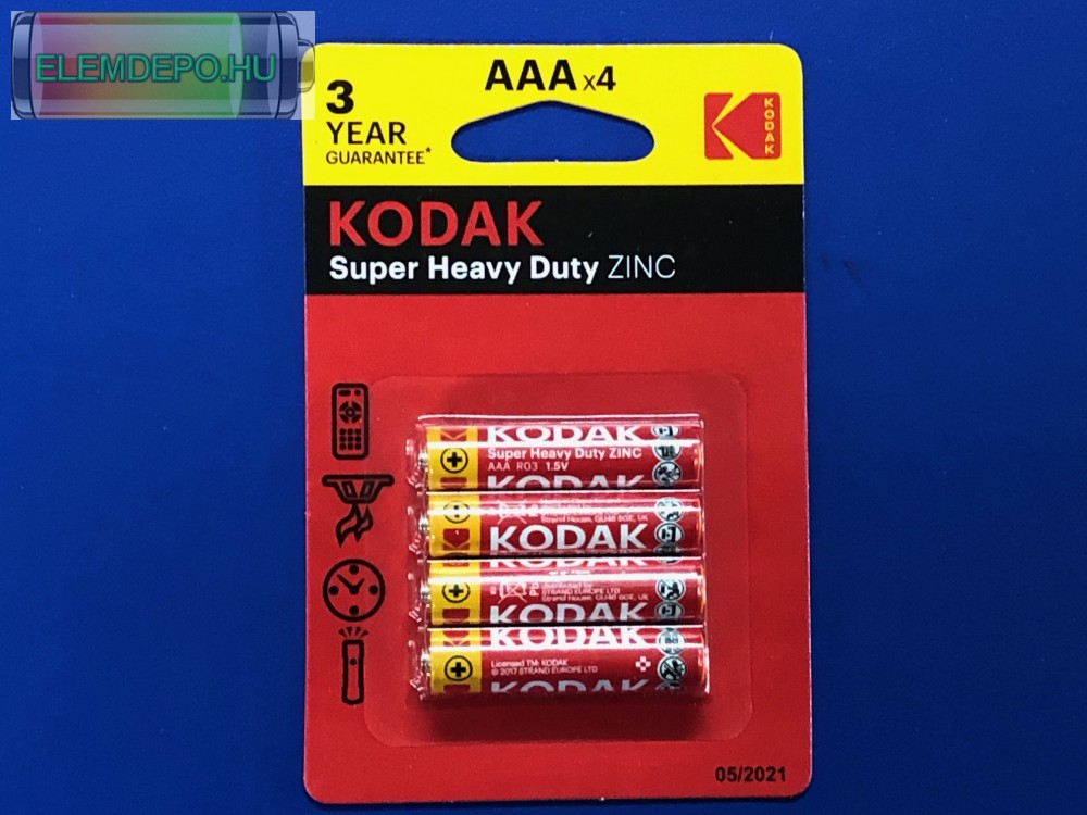 KODAK Heavy Duty KAAHZ-4 HD Nagy teherbírású cink - klorid elem ajánlott a rendszeres használathoz, háztartási gépekhez, kis és hosszú időtartamú energia felvételéhez